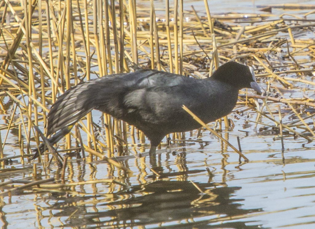 5. Jos kuka luontokuvaaja pääsee lähelle, alkaa nokikana kouristella ja ottaa erityisiä asentoja, jota en voi hyväksyä. Esim. tässä kuvassa linnun siipi on linnun takana (pitäisi olla sivulla) ja linnun toinen jalka on vielä taaempana (pitäisi olla alla toisen jalan vieressä). PERSE KENTTÄÄN TAI TULEE HAULIA TAPETUN LINNUN KUVAAKO TÄSSÄ HAETAAN?